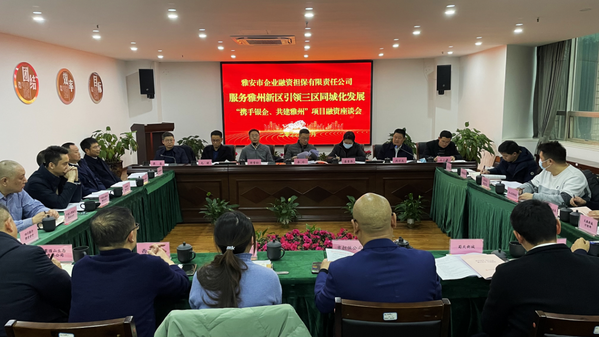 為深入貫徹落實中央、省、市相關(guān)會議精神,更好服務(wù)雅州新區(qū)引領(lǐng)三區(qū)同城化發(fā)展,助力雅安經(jīng)濟總量邁步跨入千億元臺階,1月25日,由雅安市財政局、市金融工作局指導(dǎo),雅安市企業(yè)融資擔保有限責任公司(以下簡稱“雅安市擔保公司”)承辦的服務(wù)雅州新區(qū)引領(lǐng)三區(qū)同城化發(fā)展“攜手銀企、共建雅州”項目融資座談會召開,旨在充分發(fā)揮金融現(xiàn)代經(jīng)濟核心作用,為高水平建設(shè)雅州新區(qū),引領(lǐng)三區(qū)同城化發(fā)展貢獻金融力量。