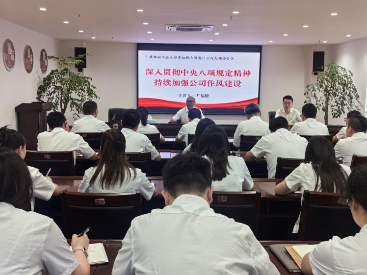 二是黨支部書記講專題黨課。市擔(dān)保公司黨支部書記、董事長尹福健以“深入貫徹中央八項規(guī)定精神,持續(xù)加強公司作風(fēng)建設(shè)”為題,為全體黨員、入黨積極分子講授了一堂生動的專題黨課。黨課圍繞充分認(rèn)識開展學(xué)習(xí)教育的重大意義、深刻把握中央八項規(guī)定精神的豐富內(nèi)涵和實踐要求、充分認(rèn)識違反中央八項規(guī)定精神的嚴(yán)重性和危害性以及準(zhǔn)確把握黨的作風(fēng)建設(shè)的重點任務(wù),自覺強黨性正作風(fēng)守紀(jì)律等4個方面展開,為進一步加強作風(fēng)建設(shè)指明了方向、提供了遵循。